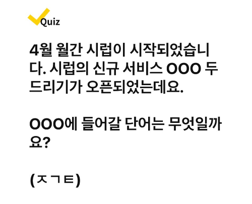4월의 월간 시럽이 시작되었습니다. 시럽의 신규 서비스 OOO 두드리기가 오픈되었는데요 . OOO에 들어갈 단어는 무엇일까요? (ㅈㄱㅌ)