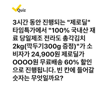 당일제조 전라도 총각김치 2KG 캐시워크 돈버는퀴즈 정답은?