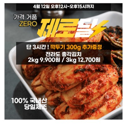 3시간 동안 진행되는 "제로딜" 타임특가에서 "100% 국내산 재료 당일제조 전라도 총각김치 2kg(깍두기 300g 증정)"가 소비자가 24,900원 제로딜가 OOOO원 무료배송 60% 할인으로 진행됩니다. 빈칸에 들어갈 숫자는 무엇일까요?