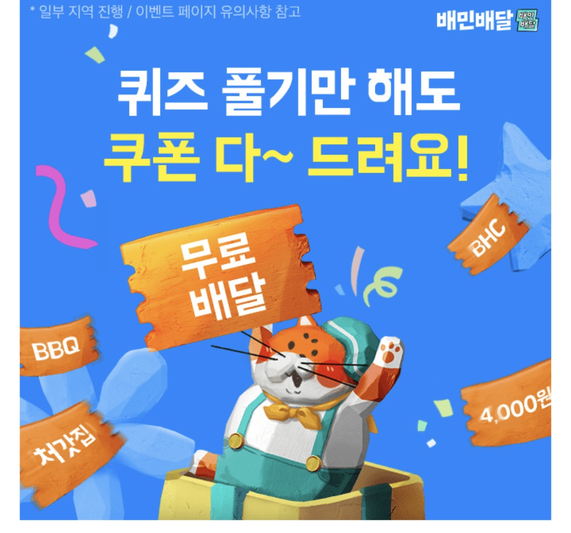 캐시워크 돈버는퀴즈 배달의민족에서는 BHC가 OOOO원 할인중