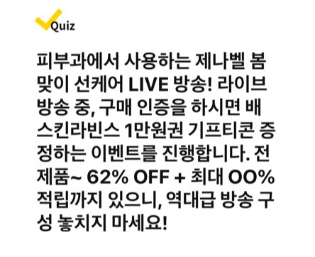 오늘은 롯데홈쇼핑LIVE와 제나벨에서 라방을 진행하고 있는데요, 아래에서 퀴즈 정답을 확인해보세요!