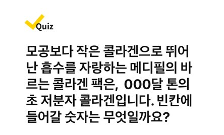 모공보다 작은 콜라겐으로 뛰어난 흡수를 자랑하는 메디필의 바르는 콜라겐 팩은, OOO달 톤의 초 저분자 콜라겐입니다. 빈칸에 들어갈 숫자는 무엇일까요?