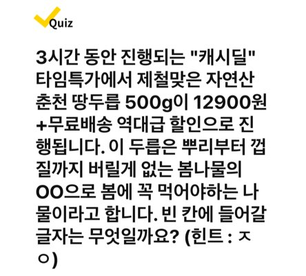 자연산 춘천 땅두릅 봄나물의 ㅈㅇ 캐시워크 캐시딜 돈버는퀴즈 정답은?
