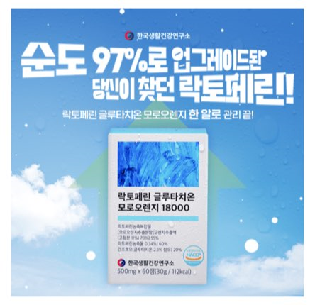 📝 출시 7개월만에 130만정 판매 돌파! 하루 평균 판매량 6,000정! 요즘 핫한 락토페린 찾으신다면 한국생활건강연구소 락토페린 글루타치온 모로오렌지로 시작하세요! 락토페린 1g당 우유 OOL의 효과를 누리실 수 있습니다. 나이가 들수록 빠져나가는 락토페린 함유량을 1개월 6천원대로 지금 채워보세요!