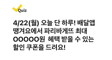 4월 22일 캐시워크 돈버는퀴즈 땡겨요 파리바게뜨 최대 OOOOO원 혜택 정답은 아래에서 확인하실 수 있습니다. 👇👇👇