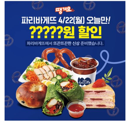 4/22(월) 오늘 단 하루! 배달앱 땡겨요에서 파리바게뜨 최대 OOOOO원 혜택 받을 수 있는 할인 쿠폰을 드려요!