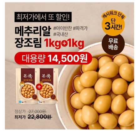 캐시워크 캐시딜 본죽 메추리알 장조림 역대급 OO% 할인
