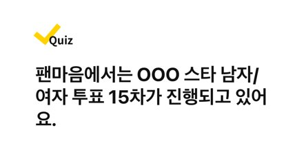팬마음에서는 OOO 스타 남자/여자 투표 15차가 진행되고 있어요