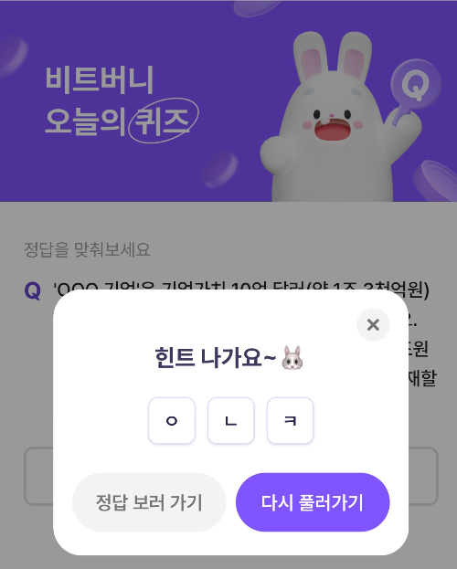 5월 7일 비트버니 오늘의퀴즈 ㅇㄴㅋ정답은?