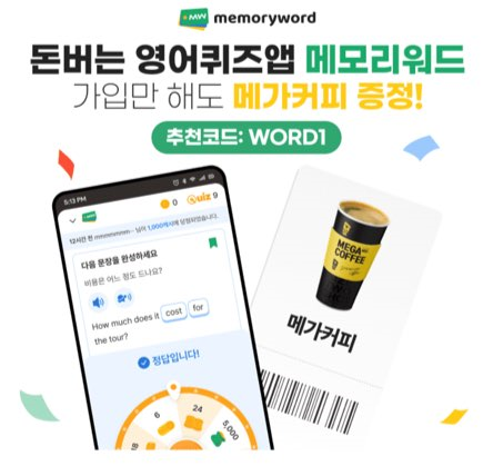 (종료) 메모리워드 가입만 해도 ★메가커피 한 잔★ 증정