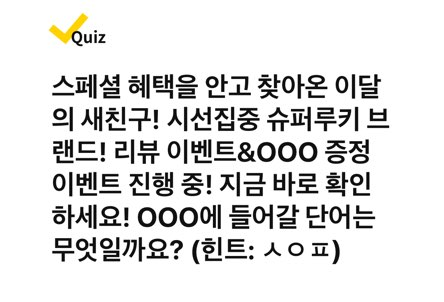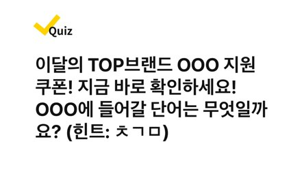 ✅ 이달의 TOP 브랜드 OOO 지원 쿠폰! 지금 바로 확인하세요! OOO에 들어갈 단어는 무엇일까요? (힌트 : ㅊㄱㅁ)