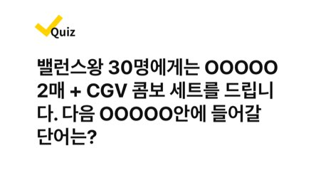 ✅ 밸런스왕 30명에게는 OOOOO 2매 + CGV 콤보세트를 드립니다. 다음 OOOOO 안에 들어갈 단어는?