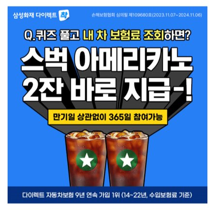 (종료) 삼성화재 내차보험료 확인 시 스벅아메리카노 2잔 증정