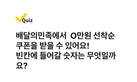 ✅ 배달의민족에서 O만원 선착순 쿠폰을 받을 수 있어요! 빈칸에 들어갈 숫자는 무엇일까요?