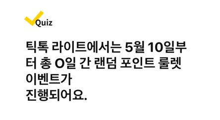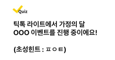 ✅ 틱톡 라이트에서 가정의달 OOO 이벤트를 진행중이에요! (초성힌트 : ㅍㅇㅌ)