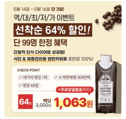 (종료) 단 3일간 식단&체중관리용 방탄커피 선착순 64% 특가
