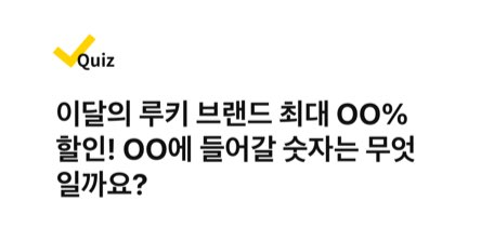 ✅ 이달의 루키 브랜드 최대 OO% 할인! OO에 들어갈 숫자는 무엇일까요?