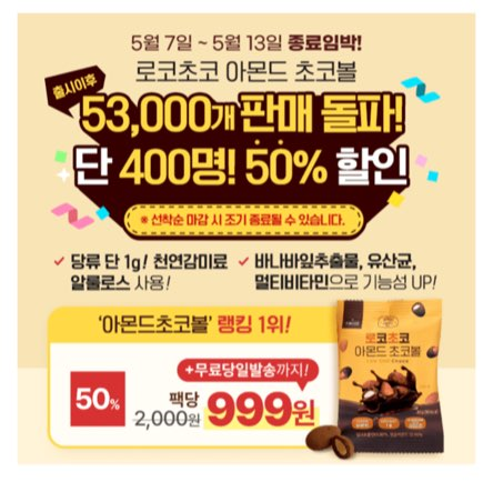 (종료) 50%할인 종료 임박 로코초코아몬드 999원 특가!