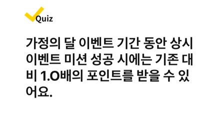 ✅ 가정의 달 이벤트 기간 동안 상시 이벤트 미션 성공 시에는 기존 대비 1.O배의 포인트를 받을 수 있어요.