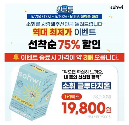 단 하루 75% 소휘 글루타치온 1+1 한정혜택