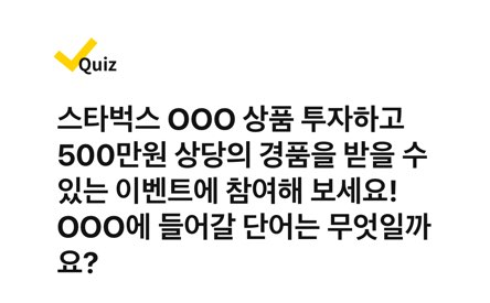 스타벅스 OOO 상품 투자하고 500만원 상당의 경품을 바을 수 있는 이벤트에 참여해보세요! OOO에 들어갈 단어는 무엇일까요?