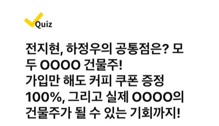 전지현, 하정우의 공통점은? 모두 OOOO 건물주! 가입만 해도 커피 쿠폰 증정 100%, 그리고 실제 OOOO의 건물주가 될 수 있는 기회까지!