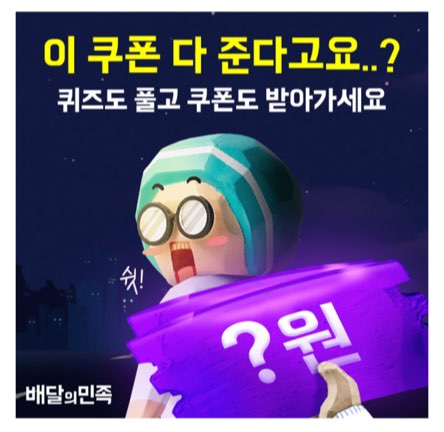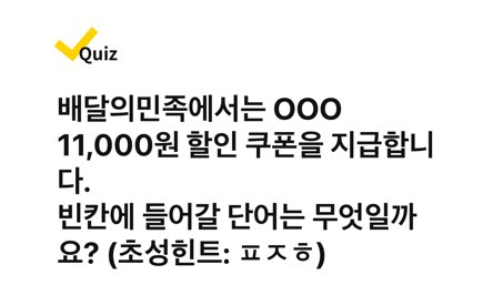 ✅ 배달의민족에서는 OOO 11,000원 할인 쿠폰을 지급합니다. 빈칸에 들어갈 단어는 무엇일까요? (초성힌트 : ㅍㅈㅎ)