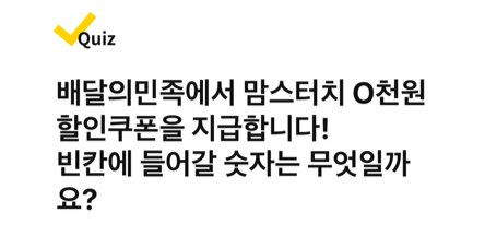 ✅ 배달의민족에서 맘스터치 O천원 할인쿠폰을 지급합니다! 빈칸에 들어갈 숫자는 무엇일까요?