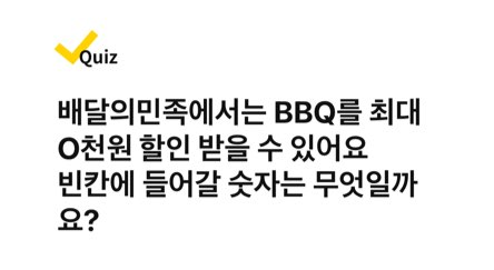 ✅ 배달의민족에서는 BBQ를 최대 O천원 할인 받을 수 있어요. 빈칸에 들어갈 숫자는 무엇일까요?