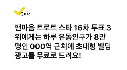 팬마음 트로트 스타 16차 투표 3위에게는 하루 유동인구가 8만명인 OOO역 근처에 초대형 빌딩 광고를 무료로 드려요!