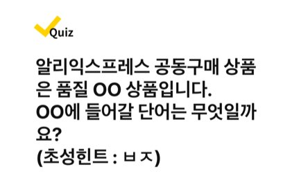 알리익스프레스 공동구매 상품은 품질 OO 상품입니다. OO에 들어갈 단어는 무엇일까요? (초성힌트 : ㅂㅈ)