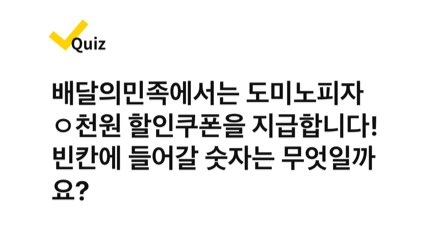 ✅ 배달의민족에서는 도미노피자 O천원 할인쿠폰을 지급합니다! 빈칸에 들어갈 숫자는 무엇일까요?