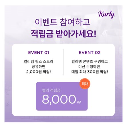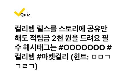 ✅ 컬리템 릴스를 스토리에 공유만 해도 적립금 2천원을 드려요 필수 해시태그는 #OOOOOO #컬리템 #마켓컬리 (힌트 : ㅁㅁㄱㄱㄹㄱ)