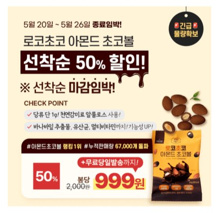 선착순 마감임박 로코초코 아몬드 50% 할인&봉당999원
