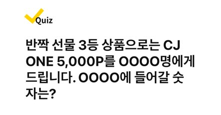 ✅ 반짝 선물 3등 상품으로는 CJ ONE 5,000P를 OOOO명에게 드립니다. OOOO에 들어갈 숫자는?