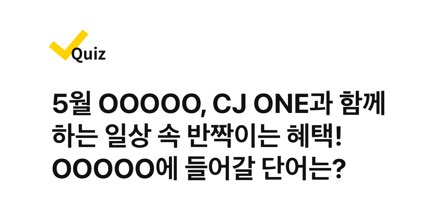 ✅ 5월 OOOOO, CJ ONE과 함께 하는 일상 속 반짝이는 혜택! OOOOO에 들어갈 단어는?