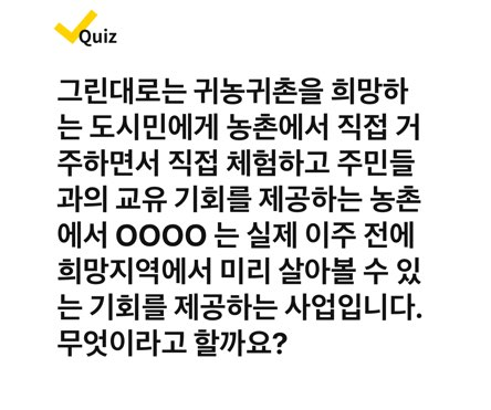 캐시워크 돈버는퀴즈 그린대로 농촌에서 OOOO는 실제 이주 전에