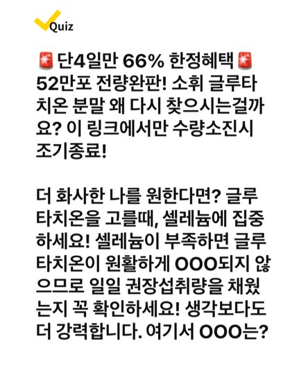 ✅ 🚨단 4일만 66% 한정혜택🚨52만포 전량 완판! 소휘 글루타치온 분말 왜 다시 찾으시는걸까요? 이 링크에서만 수량 소진시 조기 종료! 더 화사한 나를 원한다면? 글루타치온을 고를때, 셀레늄에 집중하세요! 셀레늄이 부족하면 OOOOO이 원활하게 활성화되지 않으므로 일일 권장섭취량을 채웠는지 꼭 확인하세요! 생각보다도 더 강력합니다. 여기서 OOOOO은?