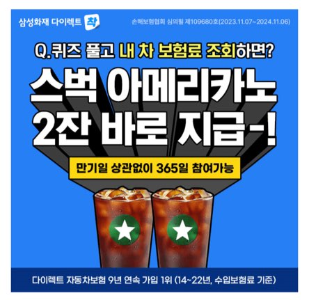 (종료) 삼성화재 내차보험료 확인시 스벅아메리카노 2잔 증정