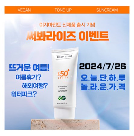 (종료) 이지마인드 선크림 출시기념 초초특가 이벤트!