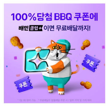 ✅ 배달의민족에서 100% 당첨 OOOO 무료 이용권을 드려요! 빈칸에 들어갈 단어는 무엇일까요? (초성힌트 : ㅂㅁㅋㄹ)