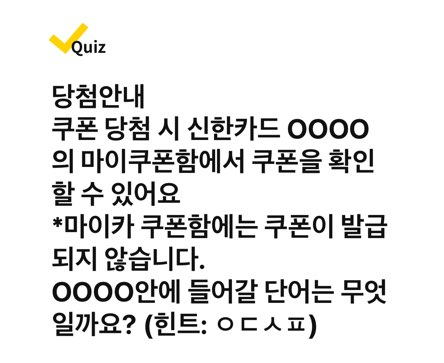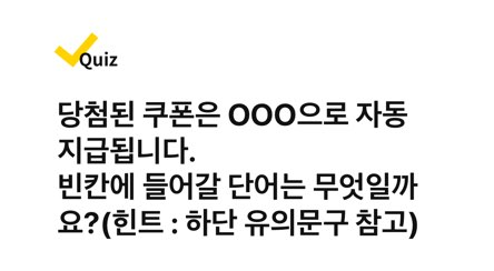 ✅ 당첨된 쿠폰은 OOO으로 자동 지급됩니다. 빈칸에 들어갈 단어는 무엇일까요? (힌트 : 하단 유의문구 참고)
