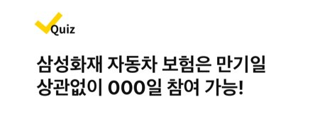 ✅ 추가 미션1 EVENT1 참여 완료 후 Mycar 출석체크 O회 이상 달성 시 혜택 지급! 포인트 쌓는 재미, 마이카 출첵은 필수! 슈퍼SOL을 가입하고 슈퍼SOL 출첵 퀴즈까지 너무나 쉬운 미션 바로 달성하세요 O안에 들어갈 단어는 무엇일까요? (힌트 : 숫자)