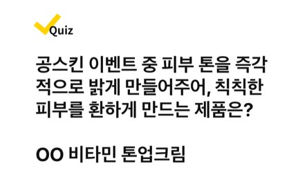 ✅ 공스킨 이벤트 중 피부 톤을 즉각적으로 밝게 만들어주어, 칙칙한 피부를 환하게 만드는 제품은? OO비타민 톤업크림