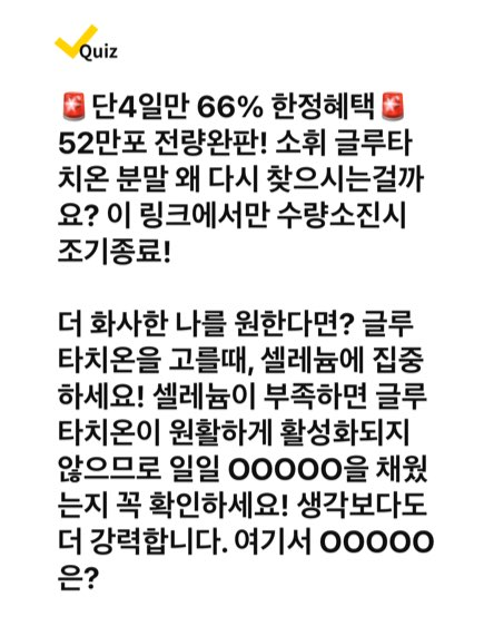 ✅ 🚨단 4일만 66% 한정혜택🚨52만포 전량 완판! 소휘 글루타치온 분말 왜 다시 찾으시는걸까요? 이 링크에서만 수량 소진시 조기 종료! 더 화사한 나를 원한다면? 글루타치온을 고를때, 셀레늄에 집중하세요! 셀레늄이 부족하면 OOOOO이 원활하게 활성화되지 않으므로 일일 권장섭취량을 채웠는지 꼭 확인하세요! 생각보다도 더 강력합니다. 여기서 OOOOO은?