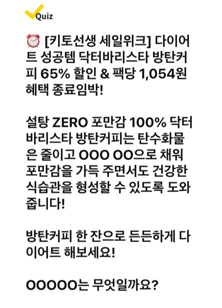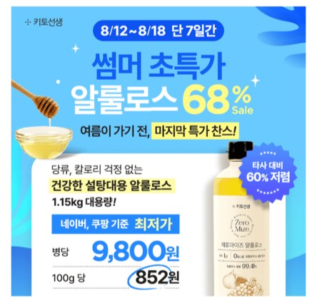 📝 🔥썸머 초특가! 단 7일간 제로마이즈 알룰로스 68% 할인! (※ 마지막 특가 찬스) 1.15kg 대용량 알룰로스가 단돈 9,800원 & 시중 최저가 100g당 852원! 설탕은 이제 그만! 제로마이즈 알룰로스는 일상 속에서 당류, 칼로리 부담 없이 달콤함을 즐길 수 있는 OOOOO를 찾으시는 분께 적극 추천드려요! OOOOO은 무엇일까요?