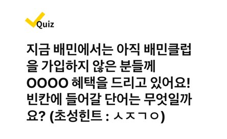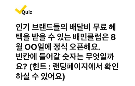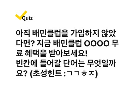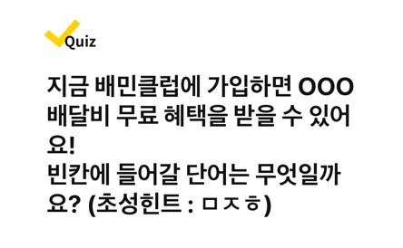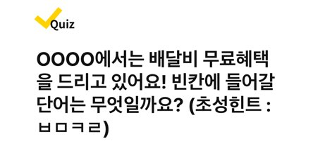 📝 OOOO에서는 배달비 무료헤택을 드리고 있어요! 빈칸에 들어갈 단어는 무엇일까요? (초성힌트 : ㅂㅁㅋㄹ)