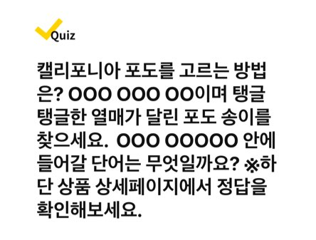 📝 캘리포니아 포도를 고르는 방법은? OOOOOOOO이며 탱글탱글한 열매가 달린 포도 송이를 찾으세요. OOOOOOOO안에 들어갈 단어는 무엇일까요?