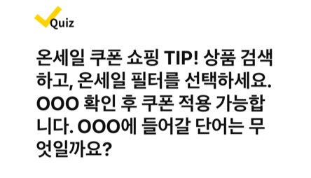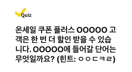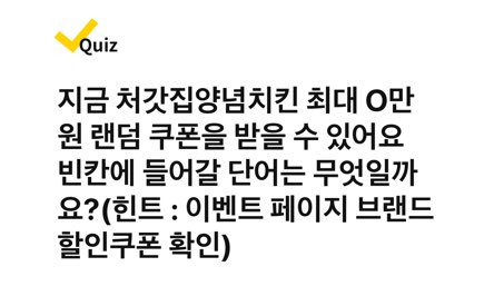 📝 지금 처갓집양념치킨 최대 O만원 랜덤 쿠폰을 받을 수 있어요. 빈칸에 들어갈 단어는 무엇일까요? (힌트 : 이벤트 페이지 브랜드 할인쿠폰확인)