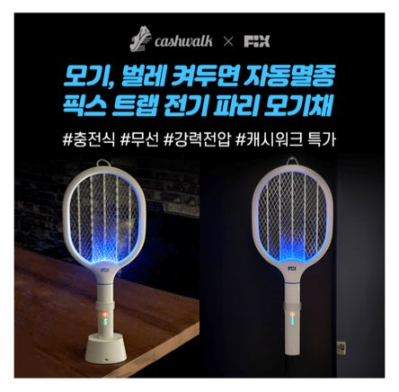모기,벌레 켜두면 자동 멸종! 픽스 모기채 캐시워크특가